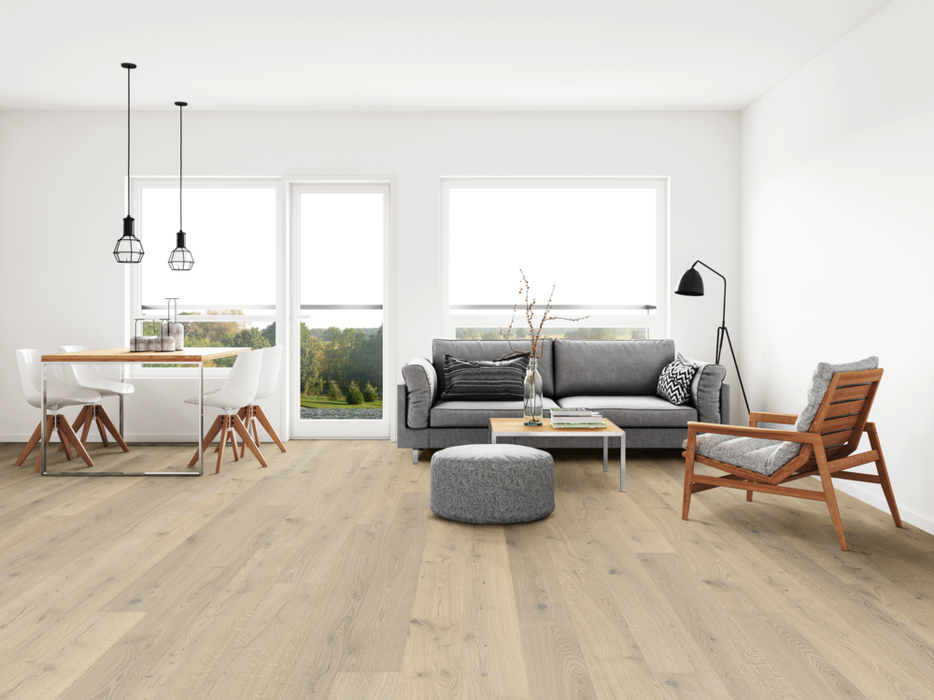 Eurowood Landhausdiele Eiche feinweiss astig, 4-seitig gefast, gebürstet, Natur-geölt