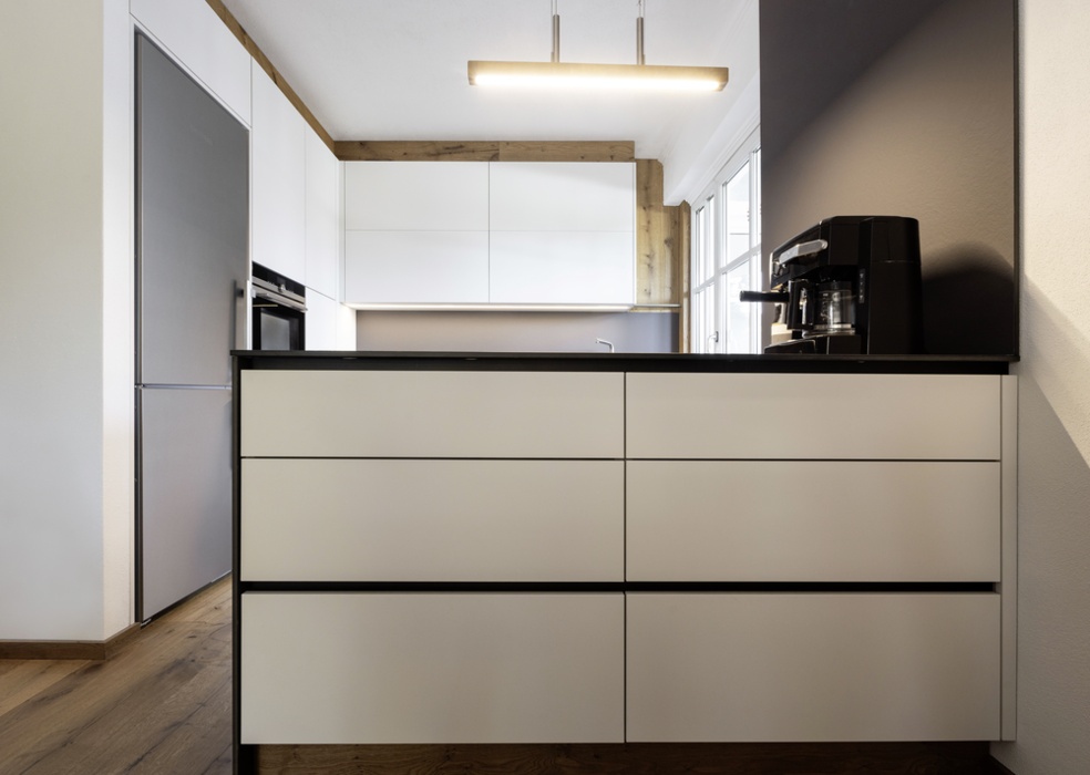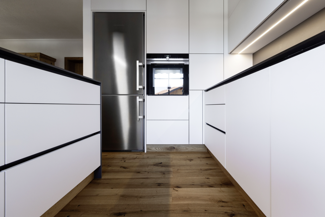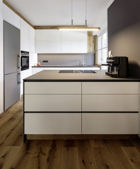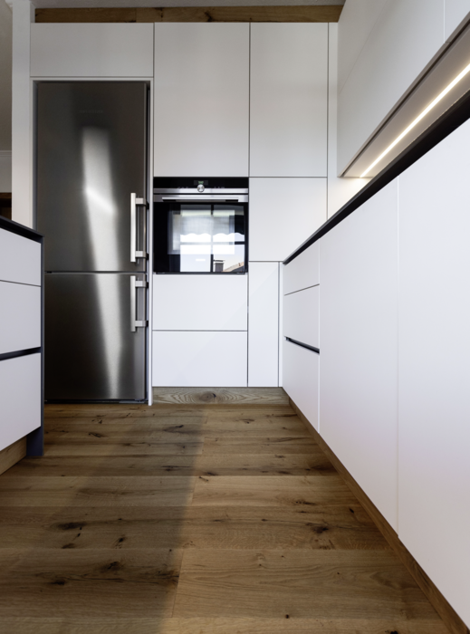 In einem Salzburger Privathaus wurde die Küche und das Esszimmer renoviert. Der neue Bereich erhielt dank verschiedener Produkte von JAF einen modernen, eleganten und rustikalen Charme. Gewählt wurde ein anspruchsvoller Parkettboden und ausdrucksstarke Türen, welche den Wunsch nach Natürlichkeit voll und ganz erfüllen. Eine Compact Arbeitsplatte von Fundermax erfüllt höchste Anforderungen an Hygiene und Widerstandsfähigkeit und ist besonders einfach zu reinigen. Besonders wichtig für den Auftraggeber war, dass die verwendeten Produkte optisch ansprechend sind und der Küche einen ausdrucksstarken Charakter verleihen.