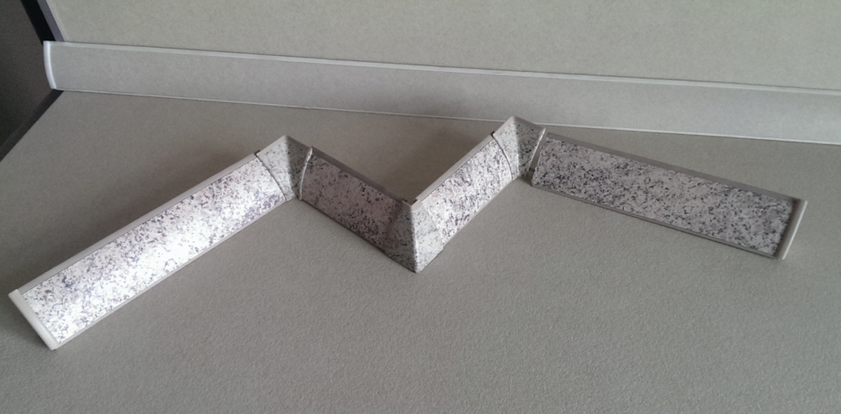 Kaindl dekorgleiches Zubehör zu den Wandanschlussprofilen. Das Set beihnaltet 2 Innenecken, 1 Aussenecke 90°, je 1 Endkappe LI + R.