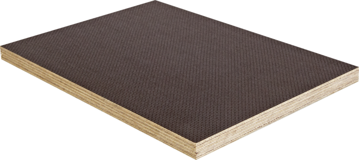 Siebdruckplatte Maxi Birke ist eine mit Phenolharz beschichtete, großformatige Birkensperrholzplatte mit einer rauen Siebdruckoberfläche.