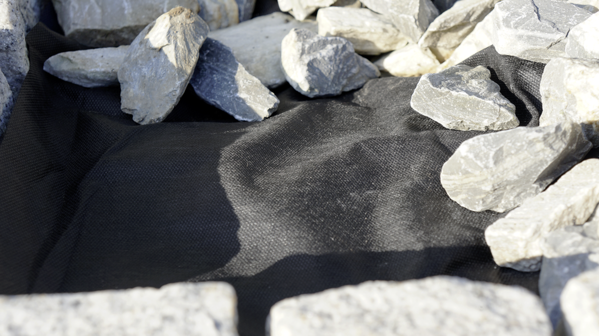 Das Wurzelvlies hemmt den Pflanzenwuchs unterhalb der Terrasse.