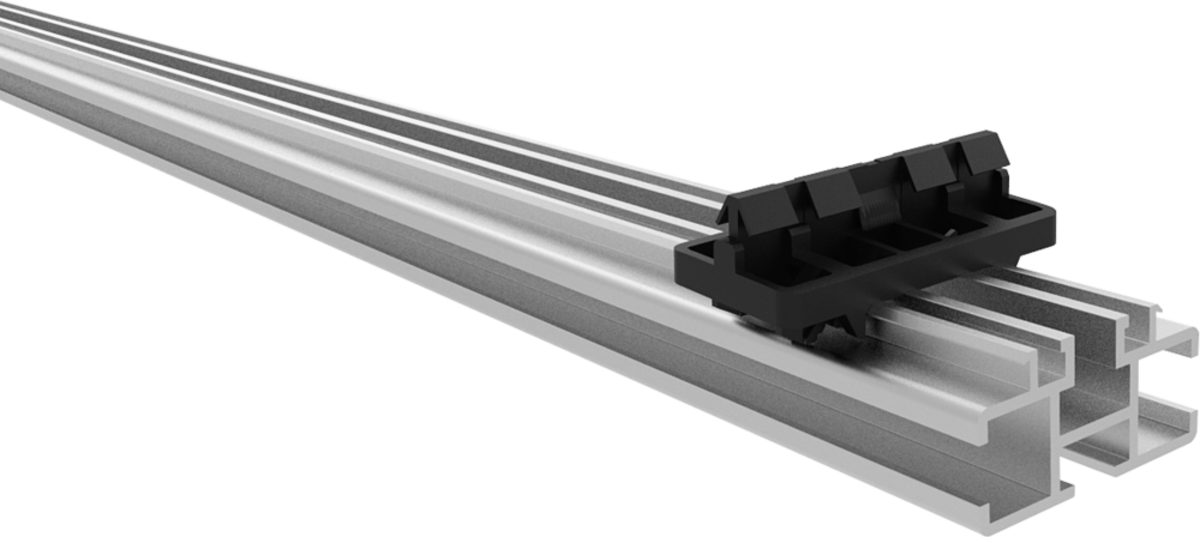 - Das Querverbindungsprofil wird unterhalb der Perfect Rail mittels Clips angebracht