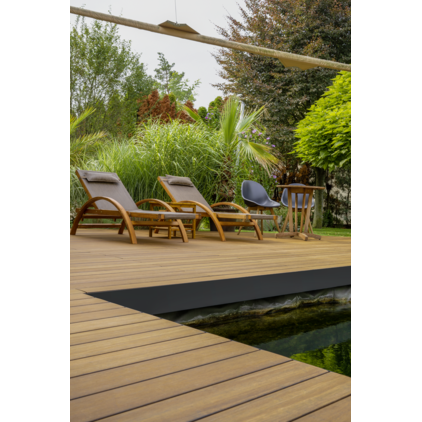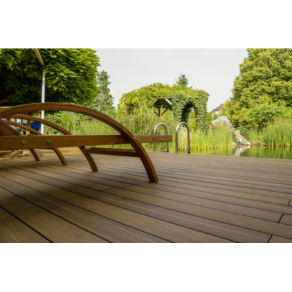 Die massiven Bambus-Terrassendielen aus zusammengepressten, thermisch modifizierten Bambusstreifen sind hervorragend für den Außenbereich geeignet. Durch ihre hohe Stabilität sind die Dielen eine Garantie für lange Terrassenfreuden. Bambus ist zudem schnell nachwachsend. Die Haptik und Optik erinnert stark an die Erscheinung von exotischen Harthölzern und punktet besonders mit sommerlichen Charme. Durch Witterungseinflüsse entsteht mit der Zeit eine einzigartige Patina, die den Dielen zusätzlichen Charakter verleiht. Mit dem modernen Verlegesystem clipJuAn können die Dielen schnell, einfach und fachgerecht verlegt werden. Die Dielen sind vorgeölt. Ein Nachölen ist nicht zwingend erforderlich, allerdings eine jährliche gründliche Reinigung.